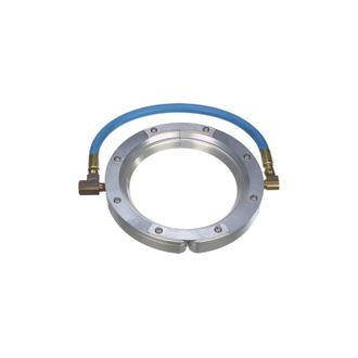 Кольцевые воздушные ножи – это практически те же воздушные ножи только в виде замкнутых колец. Они сконструированы как две отдельные части с шарнирным соединением для того, чтобы воздушные ножи могли открываться и закрываться вокруг экструдированной или движущейся детали. Эти устройства используются как эффективная система продувки для всех видов экструзии – проволока, кабельный канат, оконные профили, автомобильные бамперы, экструдированные трубы и для другое.