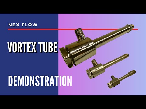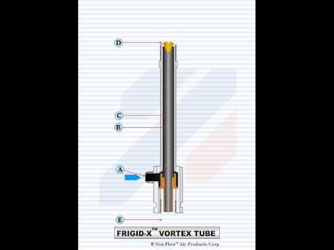 Большая вихревая трубка Nex Flow Large Vortex Tube с потреблением 1416, 2124, 2832 и 4248 л/мин. При почти полном отсутствии движущихся частей, вихревая трубка принимает сжатый воздух и превращает его в холодный воздух температурой до -46°C на одном конце, и в горячий воздух на другом конце, температурой до +127°C. Максимальная температура окружающего воздуха при эксплуатации вихревых трубок: +93ºС.
