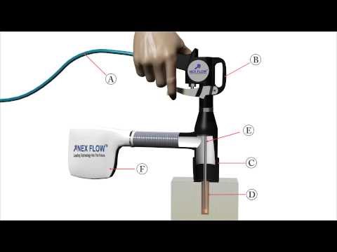 Система очистки глубоких отверстий Nex Flow разработана таким образом, что отверстие полностью закрывается (для обеспечения безопасности), а сжатый воздух вдувается в отверстие через специальные форсунки.