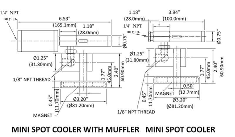| 57008F | 57008F комплект точечного мини-охладителя компании NexFlow, в составе: 56008F - точечный мини-охладитель, расход 8 CFM (227 л/мин) при 6.9 бар, резьба 1/8" NPT наруж., материал: нерж. сталь, 90029S - небольшая магнитная основа, резьба 1/8" NPT внутр., 59003 - гибкий шланг с одним выходом, в комплекте с переходником резьбы 1/8" NPT наруж. на 1/8" BSPT внутр., материал: нерж. сталь. | По запросу |
