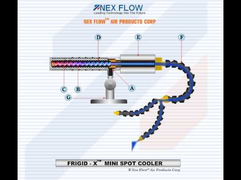 Миниатюрный точечный охладитель Nex Flow Mini Frigid-X Cooler является тихой, компактной и необслуживаемой системой, в которой применяется вихревая трубка для выдачи холодного воздуха на одном из концов.