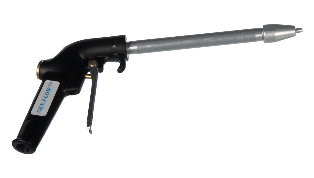 Стандартный воздушный пистолет Nex Flow Easy Grip изготовлен из алюминия и является наиболее гибким в использовании. На эти пневматические пистолеты можно установить полный спектр воздушных форсунок, удлинители различной длины и даже шарниры на кончике пистолета или удлинителя, чтобы направлять воздушную форсунку в труднодоступные места.