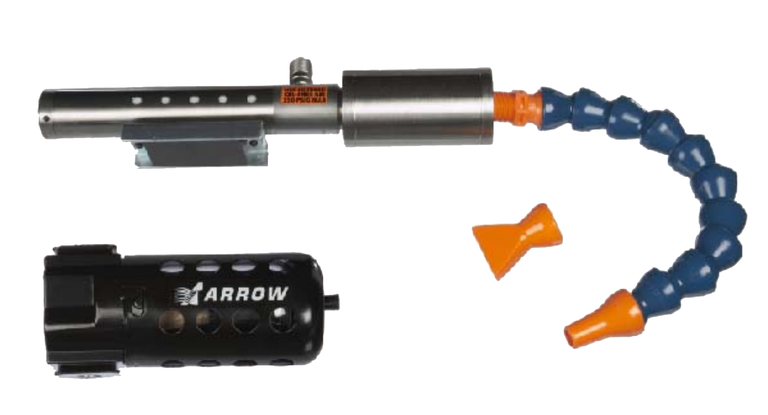 Набор 57025AD Adjustable Frigid-X Cooler System состоит из регулируемого точечного охладителя Nex Flow Frigid-X Spot Cooler 56025A, большой магнитной основы 90029L, комплекта шлангов 59002 с двумя выходами, генератора 59015H, генератора 59030H